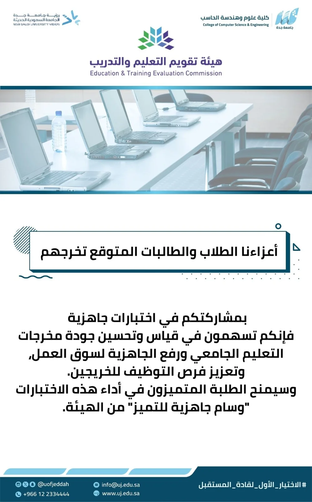 تسعى كلية علوم وهندسة الحاسب إلى تقديم تعليم نوعي وأبحاث علمية متميزة وبرامج مجتمعية تماشياً مع الأهداف الاستراتيجية للجامعة تحقيقاً لرؤية 2030. كما تحرص الكلية لتزويد سوق العمل بالمتخصصين في مجالات علوم وهندسة الحاسب، وتمكين الطلاب والطالبات من المنافسة في سوق العمل من خلال تزويدهم بالمعرفة والمهارات اللازمة، للاطلاع على دليل الكلية انقر هنا
